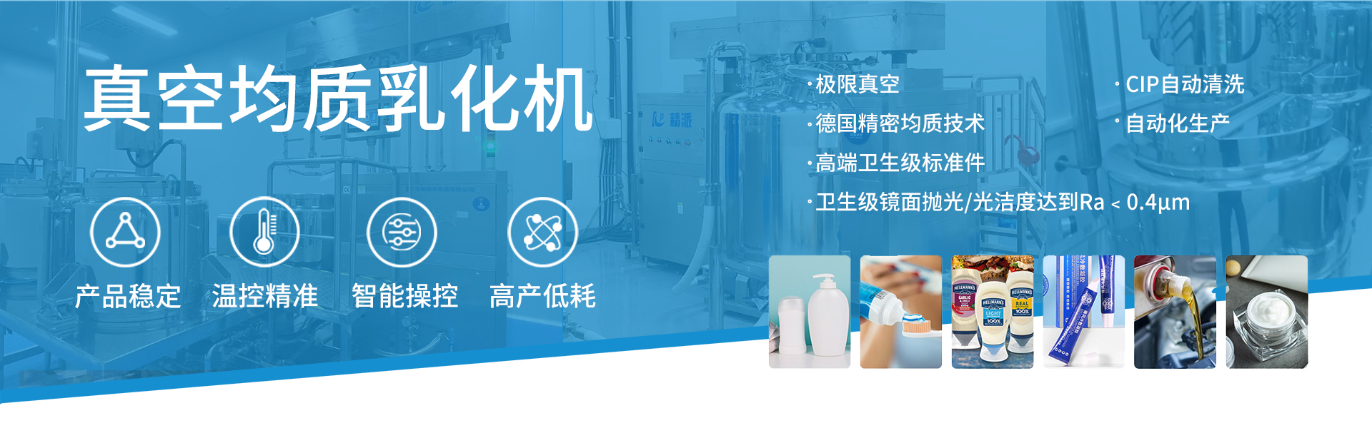 無錫精派機械成立于2009年,是一家高科技乳化 灌裝包裝生產(chǎn)線解決方案集成供應(yīng)商,致力于用 戶合規(guī)化、高效化、智能化產(chǎn)業(yè)升級。應(yīng)用行業(yè) 包括制藥醫(yī)療、寵物醫(yī)療、日化護(hù)理和醫(yī)院等。 應(yīng)用產(chǎn)品涵蓋水劑、膏劑、凝膠、液體制劑、粉 劑、注射劑等非無菌和無菌產(chǎn)品。